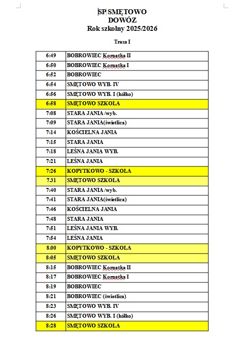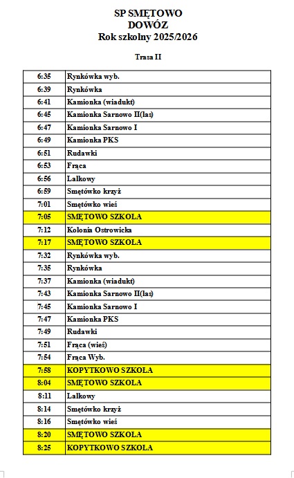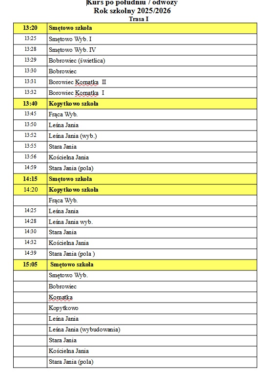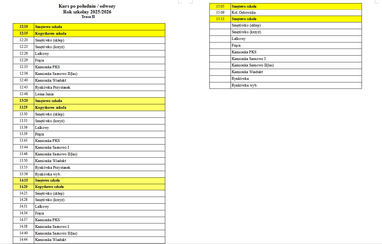Autobus szkolny - rozkład od 02.09.2025